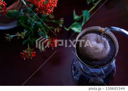 Alternative coffee brewing method, using pour over dripper and paper filter.