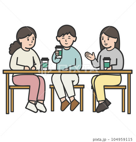 カフェでおしゃべりを楽しむ女性達のイラスト
