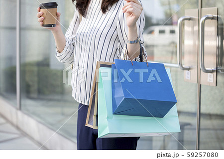 買い物を終えて店を出る若い女性