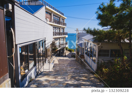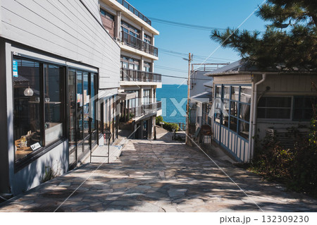 [赤穂市御崎]地中海エリアの街のようなスポットを歩く人