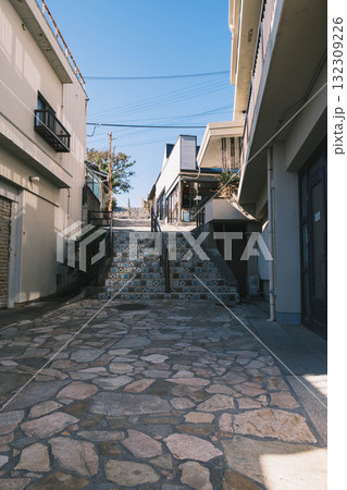 きらきら坂のタイル模様がかわいい階段を見上げる風景 兵庫県赤穂市御崎