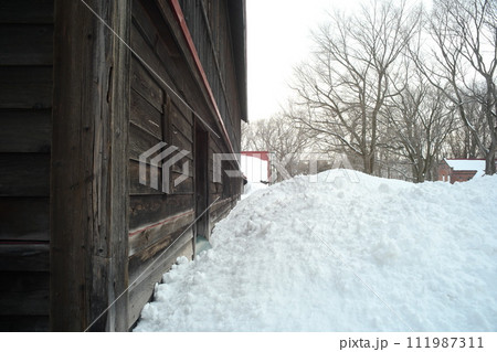 雪景色の札幌農学校第2農場 穀物庫 収穫室及脱桴室