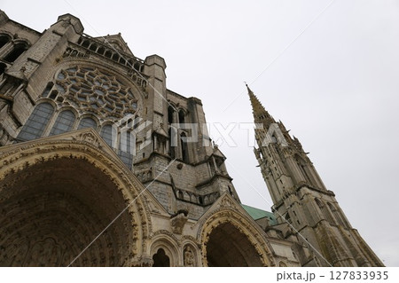 フランス、ロワール地方の中世の街並みが残るシャルトルにある左右非対称の鐘楼を世界遺産シャルトル大聖堂