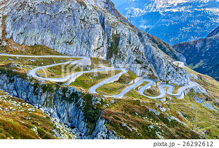 Gotthard pass road in the swiss Alps mountains, Switzerland