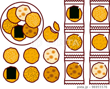 おせんべい(のり付き・醤油味・ごま入り)のイラスト