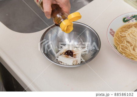 【ミドル主婦がラーメンの具の辛味葱にコチュジャンと胡麻油を入れる】