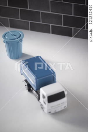 ゴミの分別・もやすごみ用ペールとゴミ収集車