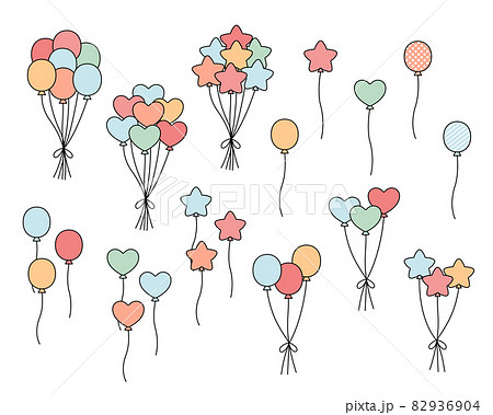 かわいい風船のイラストのセット シンプル バルーン 飾り 装飾 イベント パーティー 誕生日 お祝い