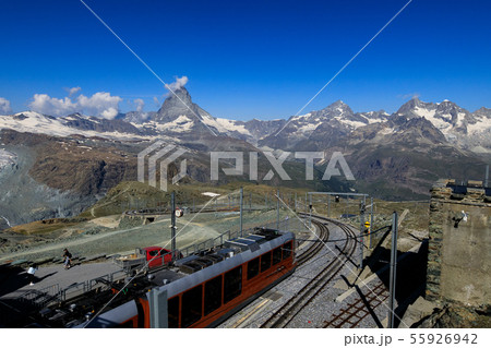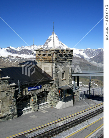 スイス、マッターホルンを望むゴルナーグラート鉄道の駅