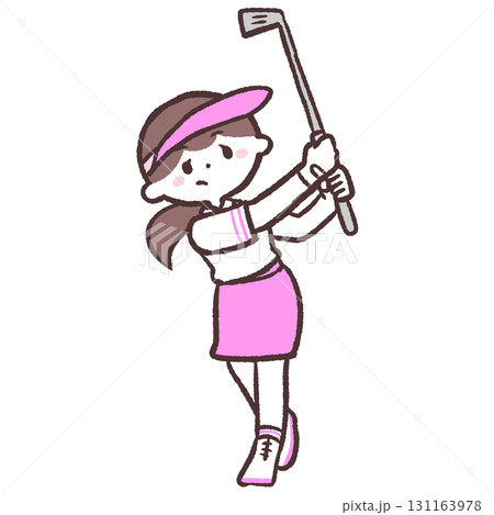 ゴルフショット姿の女性のイラスト