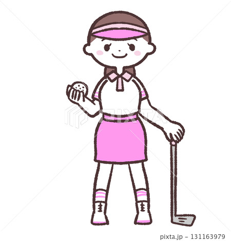 ゴルフ女性正面の全身イラスト