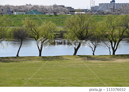 春の江戸川堤(千葉県松戸市)、矢切の渡し