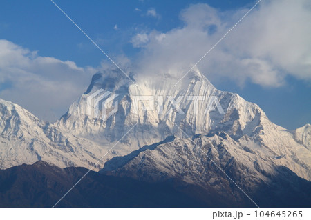 南アジアのネパール ヒマラヤ山脈眺望の名所プーンヒル展望台からのアンナプルナとダウラギリの景色