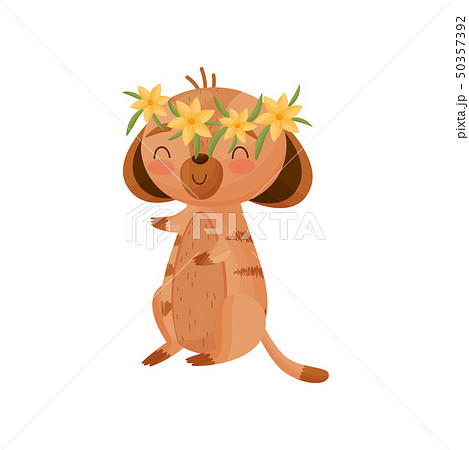 Cartoon gopher in a wreath of flowers. Vector illustration on white background.