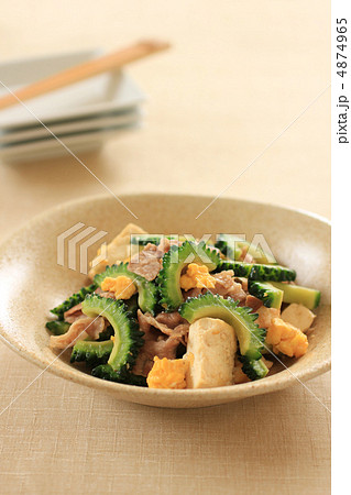 沖縄料理、ゴーヤチャンプル、ゴーヤチャンプルー。夏野菜と木綿どうふ、豚肉と卵の炒め物。