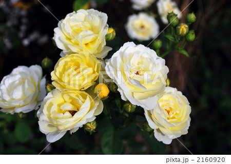 黄色からクリーム色の房咲きのバラゴールデンボーダー