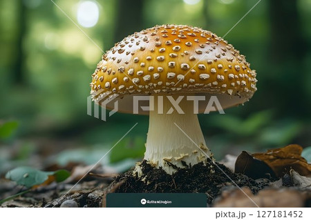 Golden Mushroom in Forest Setting with Detailed Cap Texture
