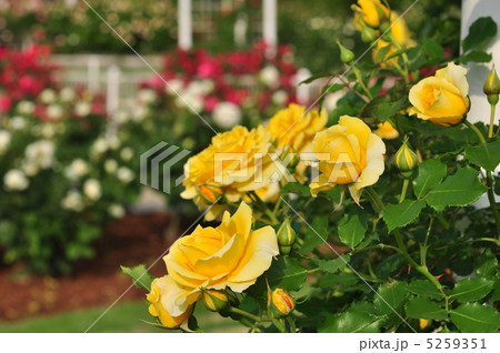 初夏のバラ園、爽やかな黄色のゴールドバニー
