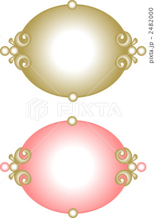 ピンクの丸いアンティーク装飾額縁 ゴールド装飾 白背景