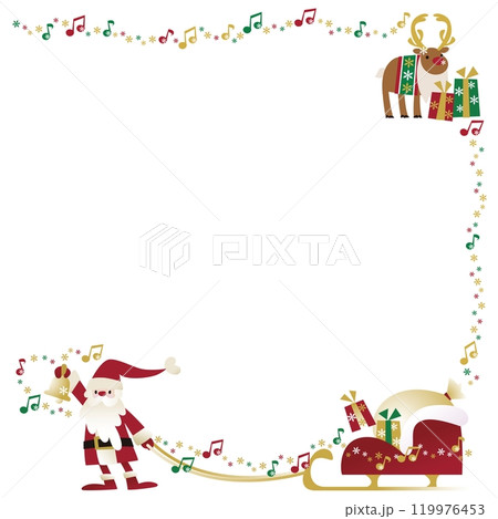 ソリを引くサンタクロースとトナカイとプレゼント_正方形フレーム