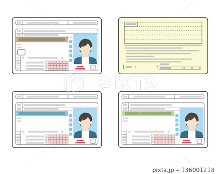 運転免許証 (ゴールド免許) の表面イメージカード 人物バリエーションのベクターアイコンセット