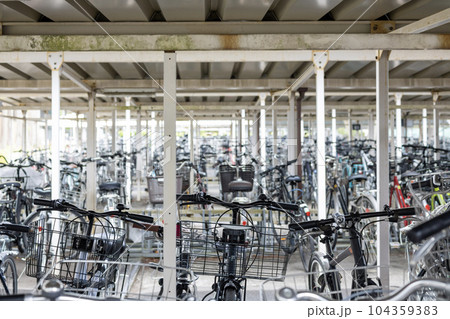 駅地下駐輪場に整然と並ぶ自転車の風景