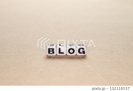 木の板の上に置かれたBLOGのアルファベットビーズ