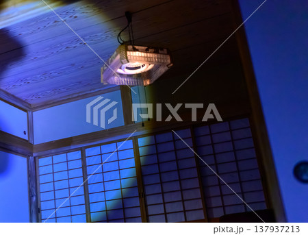 青い光に照らされた和室の照明