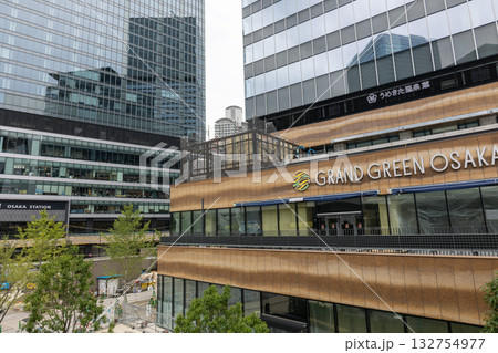 大阪/建築中のうめきたグリーンプレイスと梅田の高層ビル(2024年9月撮影)