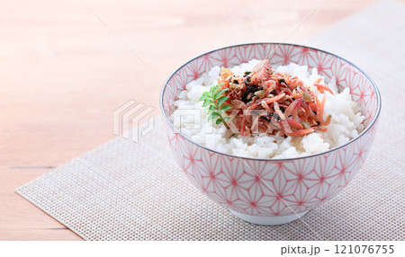 ほかほかご飯にのせた梅入りちりめんじゃこ