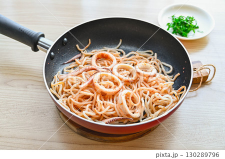 贅沢たらこパスタと明太子の彩り盛り付け・和風洋食 おしゃれランチ