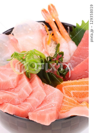 海鮮丼 丼もの 海老 マグロ サーモン 明るい背景