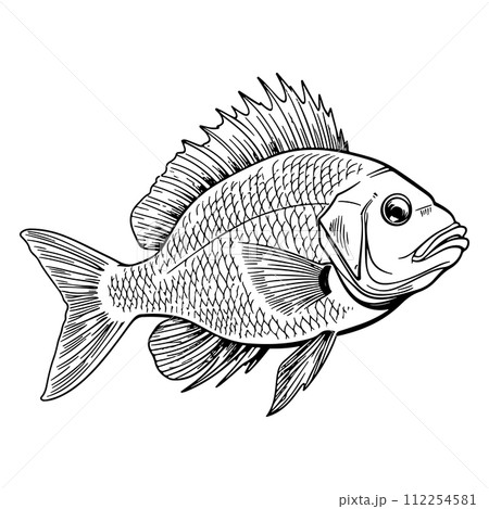 Hand Drawn Outline Sketch Fishes. Ink Drawing Sea Creature Mascot.