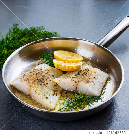 White fish fillets, seafood cooked with salt and spices. Fish fillets