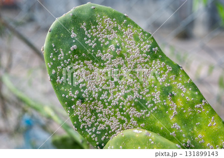 Surface of Opuntia cactus having problem with scale insect attached and sucking sap from this plant. It's easy to spread them to other houseplants, so check your plants carefully and kill it.