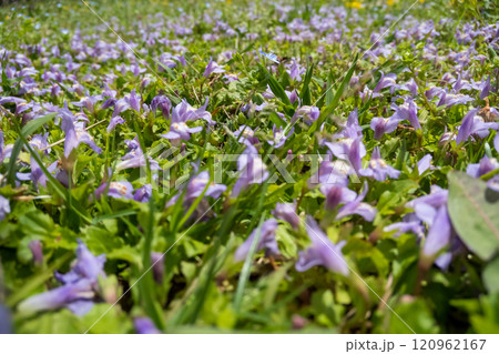 薄紫の絨毯のような「ムラサキサギゴケ」の花