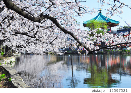 上野恩賜公園不忍池の桜並木と弁天堂