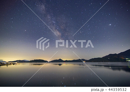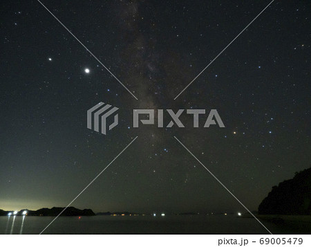 瀬戸内の夏の星景色垂直に伸びる夏の天の川