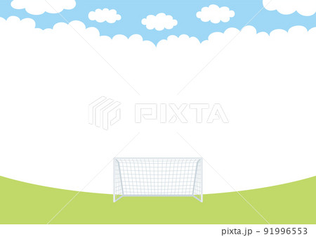 サッカーゴールのあるフィールドのシンプルで可愛い風景のイラスト コピースペース テンプレート