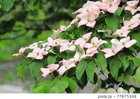 うすいピンク色のヤマボウシの花