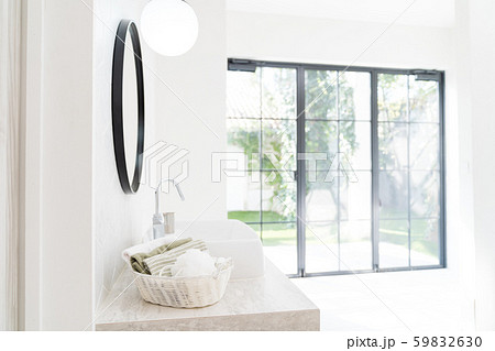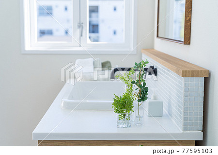 洗面所と洗濯機 清潔感のある洗面所 イメージ素材