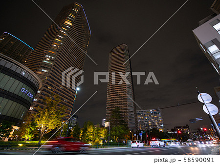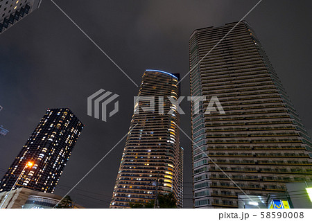 日本の川崎都市景観 台風19号の影響で、停電となっている武蔵小杉のタワーマンション