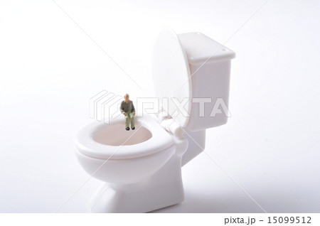 洋式トイレと仕事をするビジネスマン