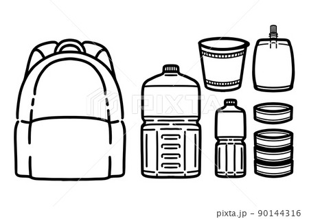 非常用持ち出し袋の中身一覧アイコンセット(防災グッズ・ピクトグラム・ベクター素材)
