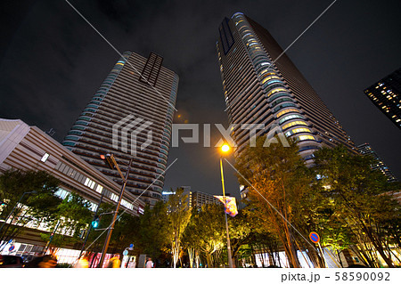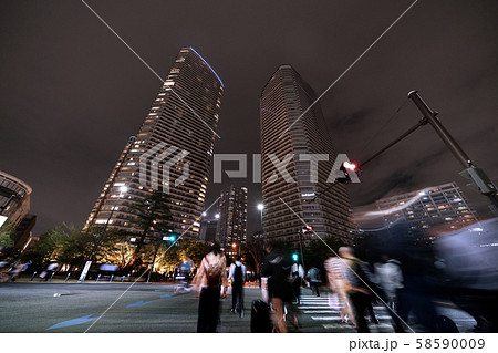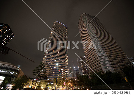 日本の川崎都市景観 台風19号の影響で、停電となっている武蔵小杉のタワーマンション
