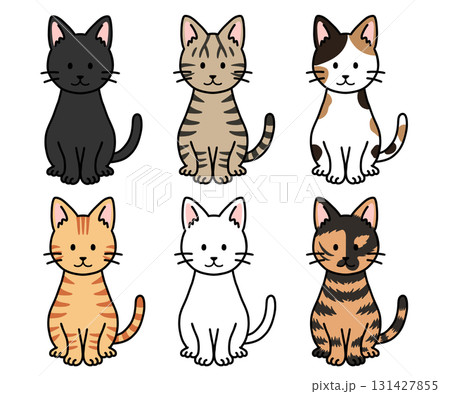 色々な柄の猫の種類セット-白猫・黒猫・三毛猫・トラ猫-