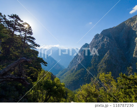 朝の岩山を望む (ギリシャ、クレタ島、サマリア峡谷)