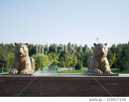 サマルカンドの公園にあるライオンの像