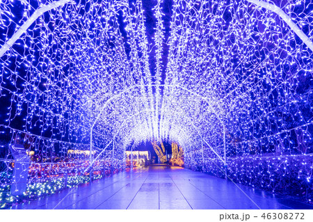 江の島サムエルコッキング苑の青紫色のアーチ型のイルミネーション2