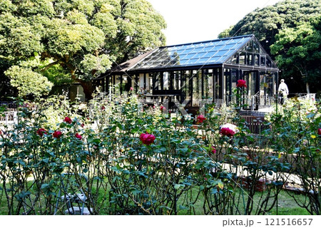 神奈川県藤沢市 江の島サムエル・コッキング苑の温室遺構とバラ園